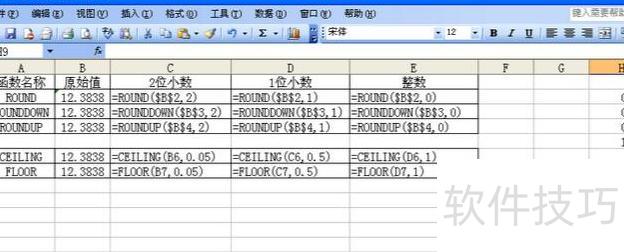 为避免显示值与实际值产生偏差,可采用 ROUND、CEILING 或 FLOOR 函数进行进位或舍去处理,具体效果所示。