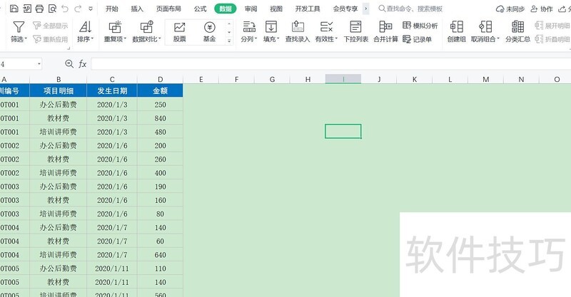 打开目标Excel文件,示数据杂乱无章,需对其进行排序处理。
