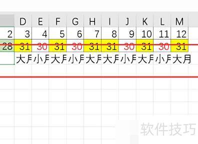 在表格下方用IF函数,依据每月天数判断大月或小月。