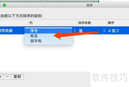 选择排序依据的列为姓名,操作所示。