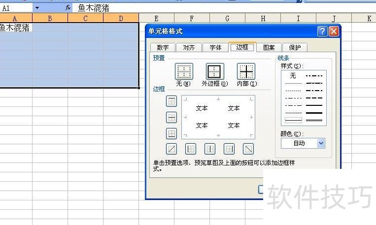 选中需创建表格的区域,按Ctrl+1打开单元格格式对话框,切换至边框选项卡进行设置。