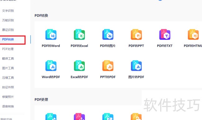 向下滚动至首页的中的,设定输出格式后点击,导入PDF文档即可自动完成转换。