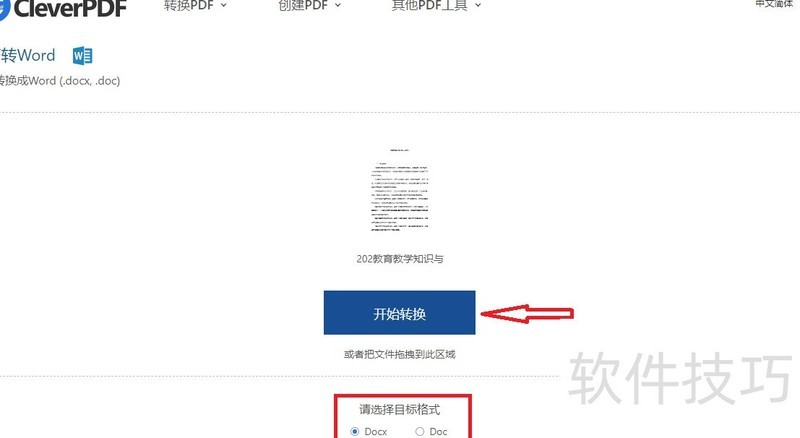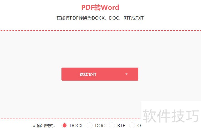 点击上传PDF文件,选择输出为docx或doc格式,然后点击。转换完成后,请立即保存生成的Word文档,以免内容丢失。