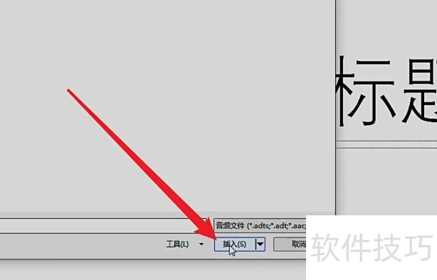 在本地文件夹中选中音频,点击插入按钮,即可将其添加到PPT中。
