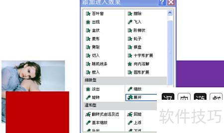 选择下方图片,点击动画→添加动画,选择进入效果中的展开,设置持续时间为0.25秒。