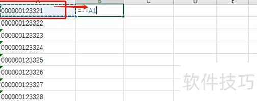 打开需处理的表格,选中第二列首单元格,输入等号后点击第一列首个单元格,所示。