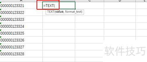 在单元格输入=TEXT,然后用鼠标选中第一列的单元格。