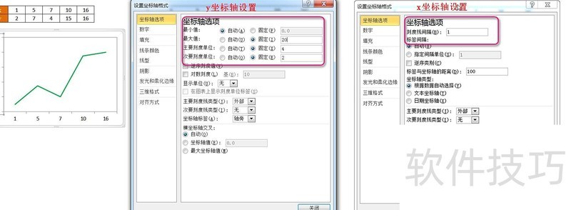 通过设置图表坐标轴格式可发现,纵坐标能调整范围和间隔,而横坐标无法实现。这是因为折线图的横坐标默认为文本类型,不支持数值范围与间隔设置。同时,尽管数据表中的x值并非等间距分布,但在折线图中却被等距排列,进一步说明其横坐标按文本处理。因此,用折线图展示非等距数值型x数据并不合适,无法真实反映数据间的距离关系,应选用更适合数值坐标的图表类型。