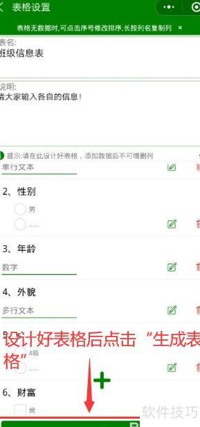 完成设置后,点击页面底部生成表格即可自动创建表格,再通过分享功能将表格发送至群或好友,方便他人填写。