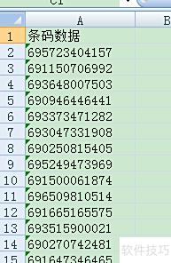 可先将所有条码数据以文本格式逐个录入Excel,按竖列存放于独立单元格中。