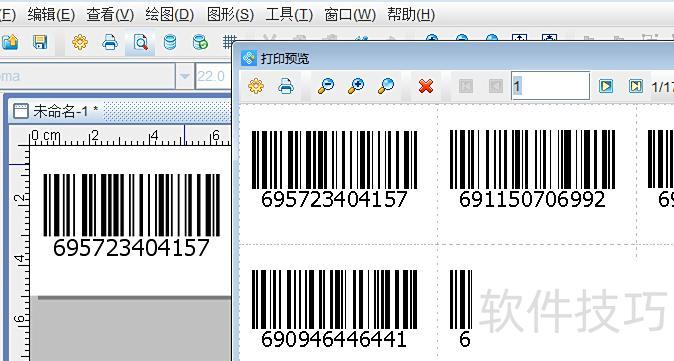 设置好首个条形码数据后,Excel中的所有数字即自动转为条形码,可点击打印预览翻页查看生成效果。