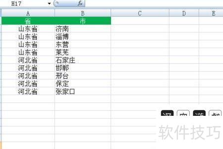 选中需分列的市数据,点击数据选项卡中的分列工具按钮进行操作。