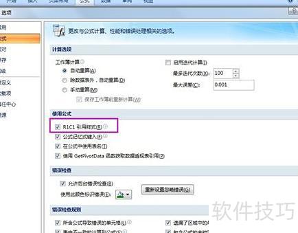 若要将列名ABC改为123,请勾选使用公式下的首个选项R1C1引用样式。