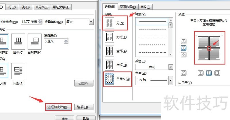 先打开边框底纹设置,选无边框,再进入自定义边框,用鼠标点击我箭头所指位置,点亮内边框即可。