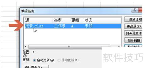 点击后将弹出编辑链接界面,可查看表格中的现有链接,记下链接文件名,本例中为报表。