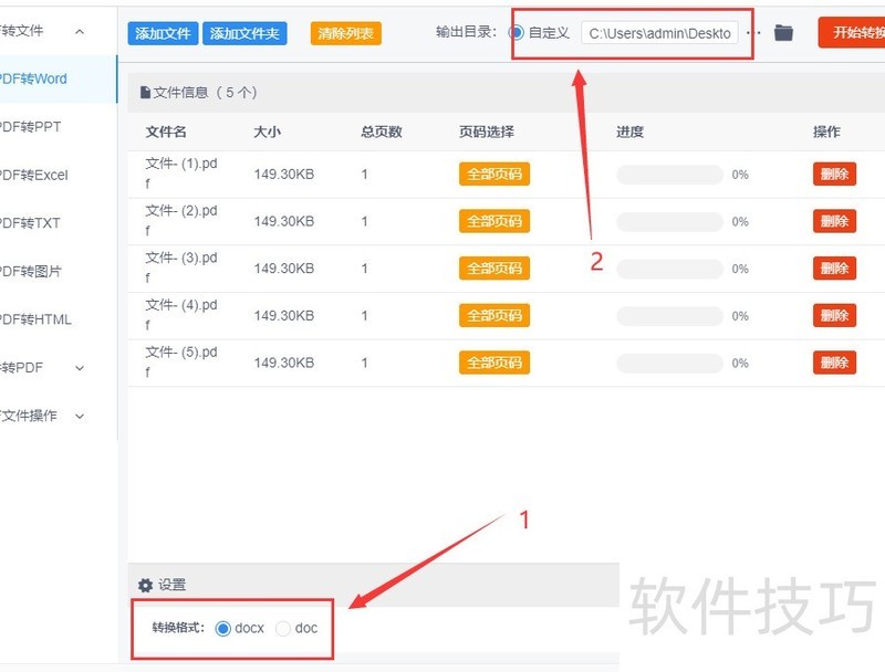 文件添加完成后,设置需转换的Word文档格式,软件默认为docx,可根据需要选择其他格式;然后在输出目录中指定保存文件夹名称,转换后的Word文件将统一存储在此处。整个过程操作简便,便于管理和查找生成的文档。
