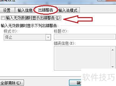 取消中的输入无效数据时显示错误警告,点击,之后即可在下拉选项中选择√。