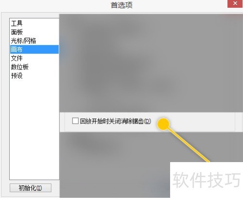 2、 在首选项的画布设置里,开启回放时自动关闭消除锯齿功能。