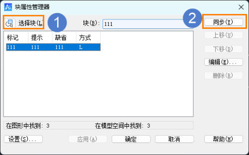 命令输入【BATTMAN】,进入块属性管理器,点击【选择块】按钮,选择需要更新的图块,点击【同步】,即可将该块更新。