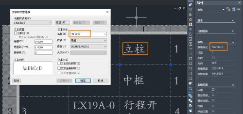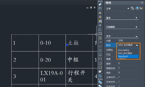 3.选择单行文字,键盘【Ctrl+1】打开特性栏,在特性栏中指定需要的字体样式名,完成字体修改。