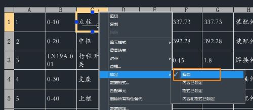1.选中需要修改的表格,鼠标【右键】,【锁定-解锁】,将内容解锁;