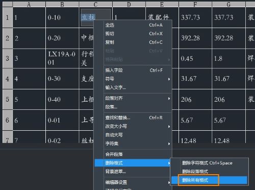 2.双击表格,进入文字编辑,选择文字,鼠标【右键】,【删除格式-删除所有格式】,删除后,文字字体即可与文字样式设置一致。方案二:1.点击菜单【修改-分解】(【EXPLODE】命令),选择表格进行分解;