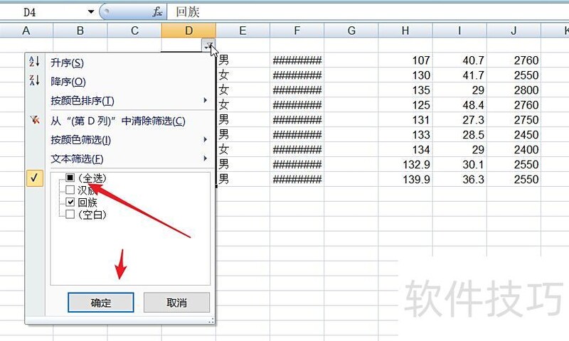 在筛选选项卡中选中目标数据,点击确定完成筛选操作。
