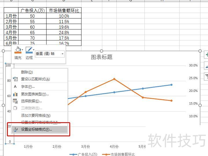接下来是关键步骤:选中市场销售额环比数据,右键点击并选择设置数据系列格式。