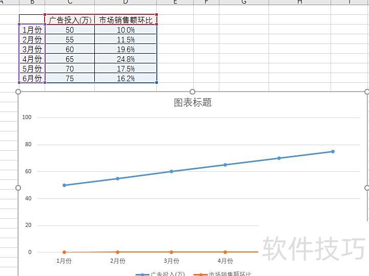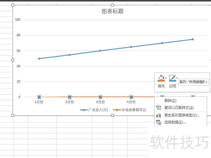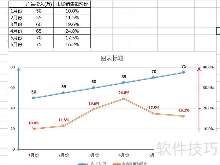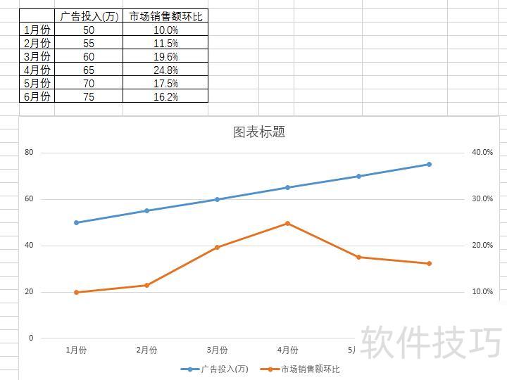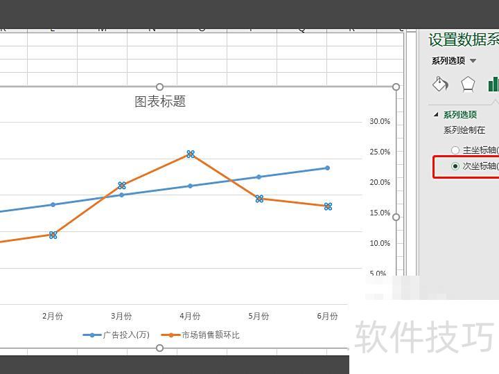 在系列选项中勾选次坐标轴,使图表中的两组数据呈现更清晰直观。