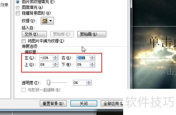选定图片后,可通过点击方向偏移量的上下箭头或手动输入数值,调整图片位置,灵活控制其伸展与摆放,确保主体内容清晰呈现于版面之中。