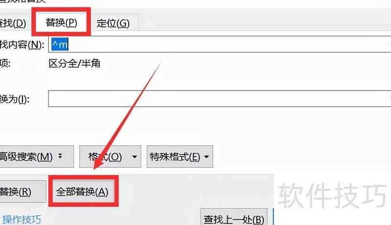 4. 步骤二:查找完成后,切换至替换并点击全部替换即可完成操作。