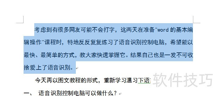 将光标置于选定文本前,鼠标移至其后,按住Shift键并单击左键,即可快速选中中间区域。