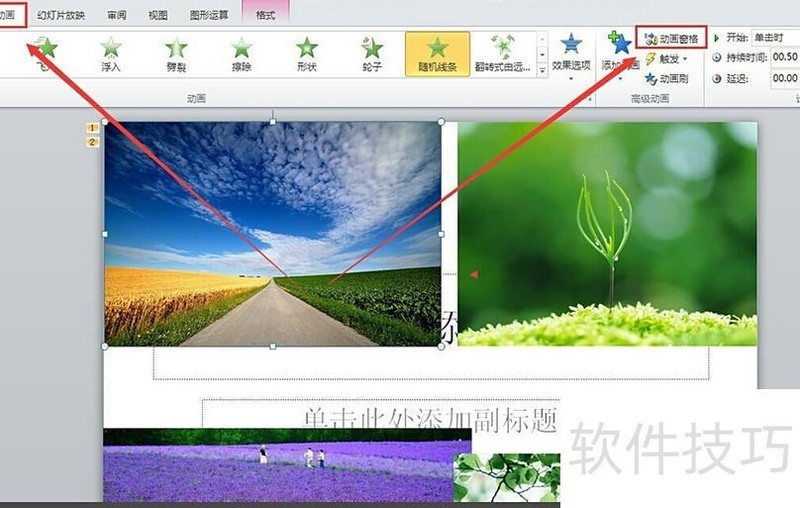 在动画选项卡中点击动画窗格,相关按钮位于上方菜单栏,参照图示操作即可轻松完成。
