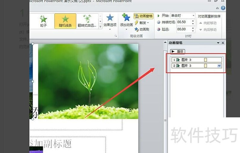 打开PowerPoint 2010中已编辑完成的文件,建议选择含有动画效果的文档,所示。