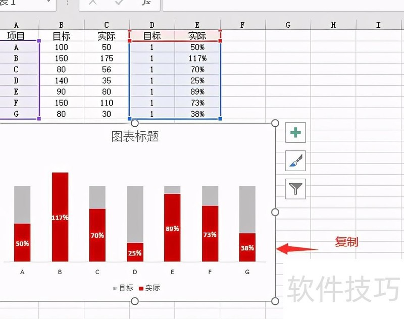 在Excel中设计好图表后,选中图表按Ctrl+C进行复制。