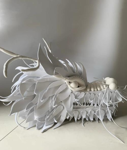 2、龙头骨架,是它的脊梁样子想好了,就要搭骨架,骨架是龙头的支撑,就像人的骨头,非常重要,通常用铁丝或竹篾来制作,根据你的草图,弯折出龙头的轮廓,包括嘴巴、眼睛、角和主要的身体线条,骨架要牢固,但也不能太笨重,否则不好看,搭好后,自己拿起来看看,感觉一下,是否结实,形状对不对。