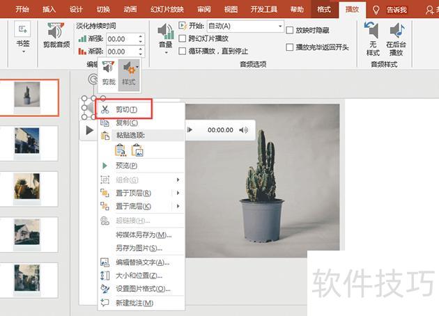 若想删除PPT中所有幻灯片的音效,可逐一查找每页上的小喇叭图标,右键点击后选择剪切,即可将音效移除。