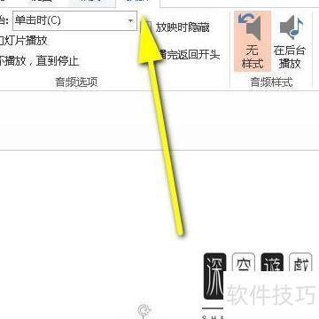 播放音频时,图标会持续显示在幻灯片中影响美观,可在音频工具选项中勾选放映时隐藏,使图标在放映时不显示,从而保持页面整洁美观。