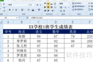 打开Excel 2007,我已预先准备了一份成绩单。