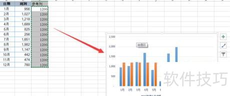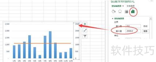 为使次坐标轴与主坐标轴数值对应,选中次坐标轴并将其最大值设为2500,至此精确的图表参考线已成功创建。