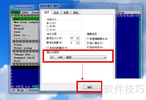 3、 将默认代码页设置为437 (OEM - 美国),然后点击确定保存设置并关闭窗口。
