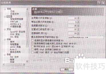 7、 在对话框中,可对日志、连接、传输及软件安全等常规设置进行全方位配置,功能丰富且实用。