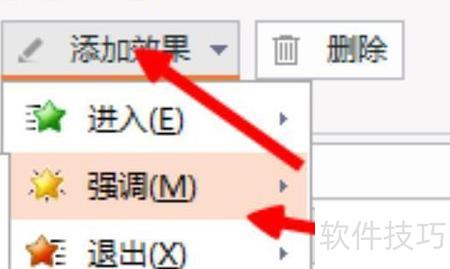 接着在添加效果的下拉菜单中选择强调和其他效果。