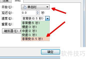 在下拉菜单中选择效果选项,设置动画播放后隐藏,并在计时中将延迟设为1秒。所示: