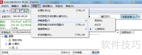 4、 单独上传时,请先将传输模式设为二进制,以保证文件完整无损。