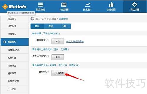 1、 将A网站全部文件打包,进入设置中的数据备份,选择整站压缩功能进行备份。