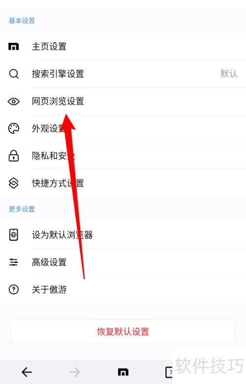 2、 进入设置后选择网页浏览相关选项