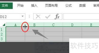 将鼠标移至单元格列间分隔线,光标会变为特定形状。