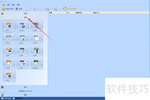 2、 启动格式工厂,进入主界面后选择音频分类中的MP3功能。