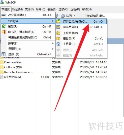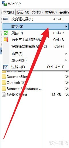 1、 在WinSCP中选择转到选项。